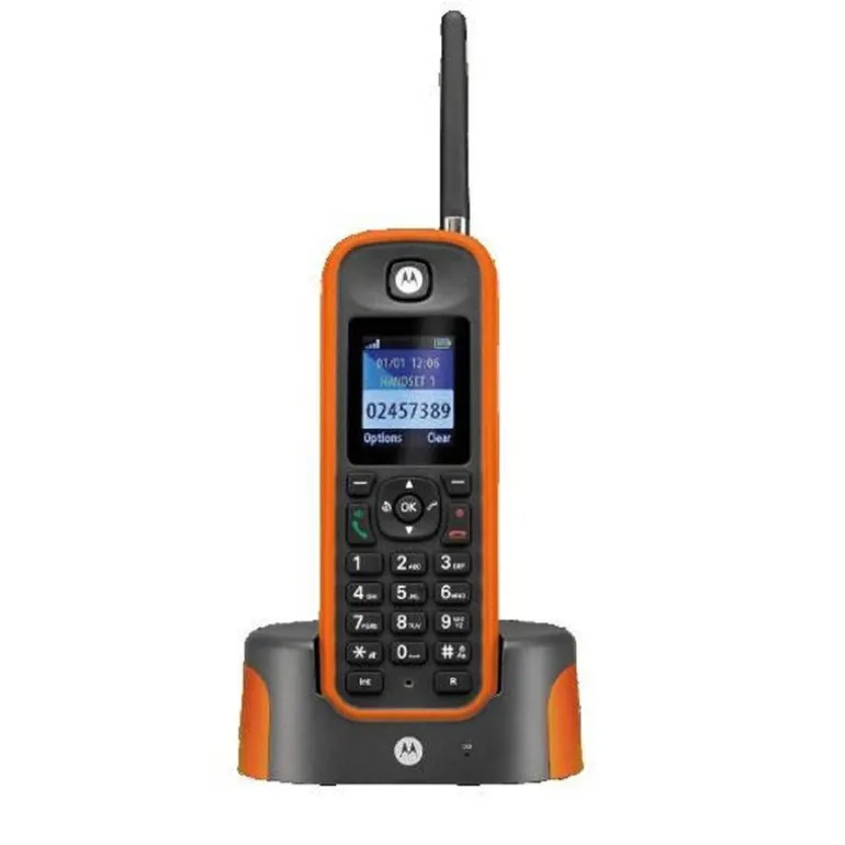 El Teléfono Fijo Motorola O201 DECT Naranja destaca por su pantalla TFT de 1,8″ a color, su resistente diseño contra polvo y agua, y su alcance inalámbrico ultralargo de hasta 650m. Cuenta con una agenda para 200 contactos y un teclado iluminado grabado con láser, asegurando una experiencia de uso cómoda y eficiente.