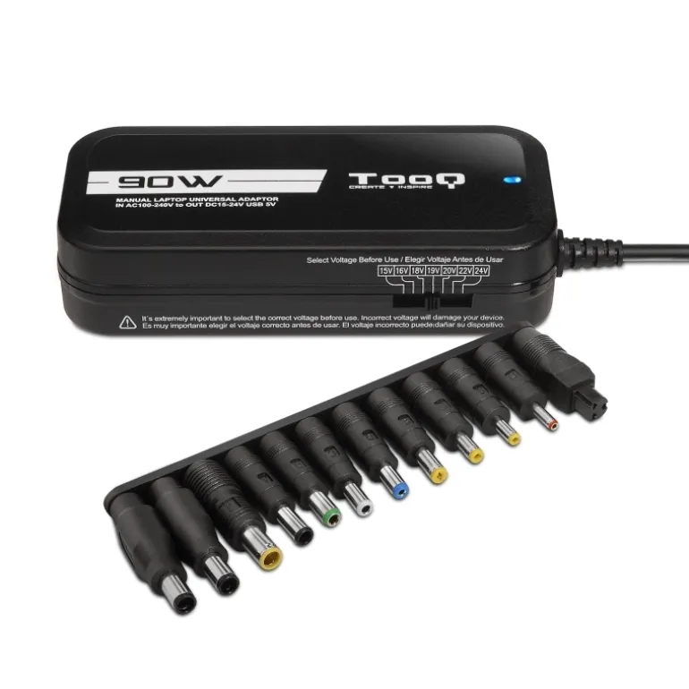 Cargador manual Universal multi tensión para portátil 90W con 1xUSB y 12 conectores