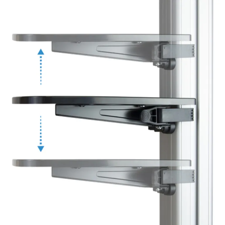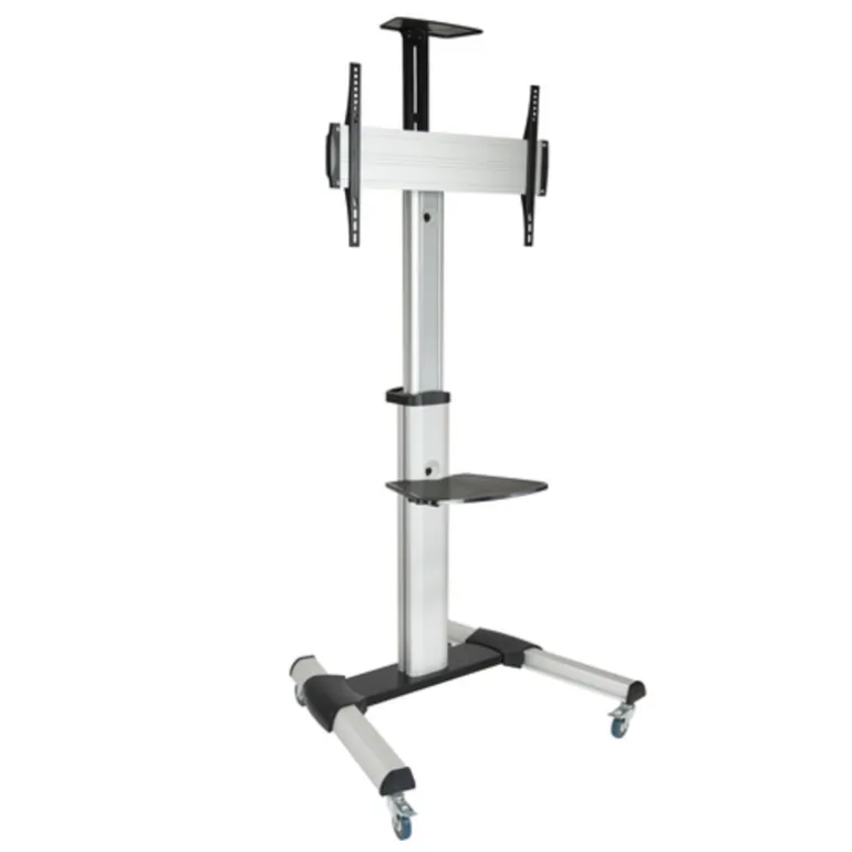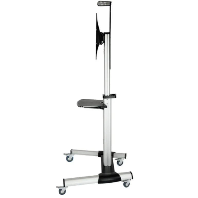 Soporte aluminio de suelo para monitor / TV LCD, PLASMA y LED (37″-70″) en posición vertical y horizontal con bandeja para DVD y soporte de camara