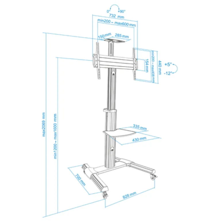 - Rango de ajuste para la altura de soporte TV:1200-1600mm