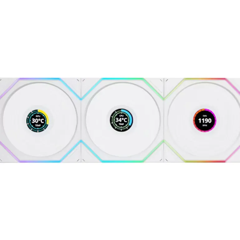Ventilador Lian Li Uni Fan TL120 Wireless LCD ARGB Reverse Blade 120mm Triple Pack Blanco