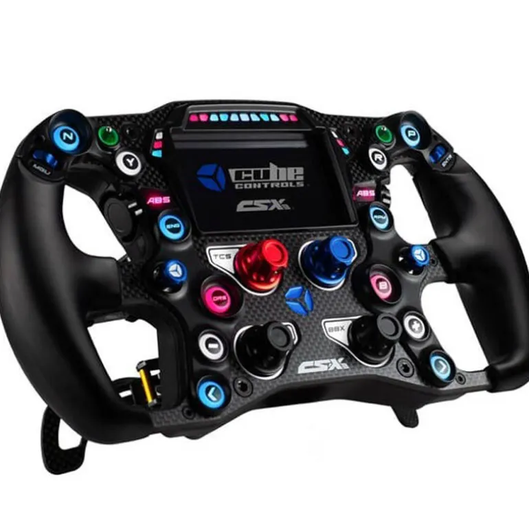 El Cube Controls CSX-3 es un volante de alto rendimiento diseñado para llevar tu experiencia de carreras al siguiente nivel. Equipado con una pantalla LCD táctil y cuatro paletas de polímero reforzado con fibra de carbono, el CSX-3 combina personalización avanzada con un control preciso. Con su conexión USB Q-Conn magnética y ajustes de LED RGB personalizables, ofrece tanto estabilidad como flexibilidad en cada carrera.