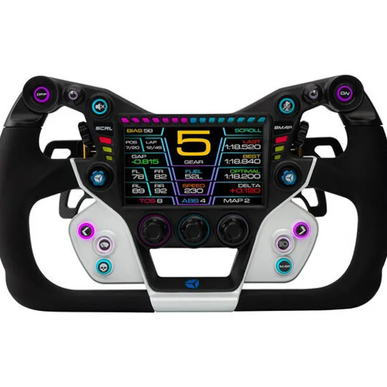El volante Cube Controls GTX2 en colores negro y blanco lleva tu experiencia de simulación al siguiente nivel con su diseño de 32 cm de diámetro. Fabricado en aluminio y carbono, ofrece una construcción robusta y una superficie adherente para una conducción precisa y duradera. Equipado con levas de cambio magnéticas, un indicador de cambio RGB y una pantalla para parámetros clave, garantiza un control excepcional y una inmersión total en tus carreras. Compatible con las distancias entre ejes de Cube Controls, este volante está listo para mejorar tu configuración y llevarte a la victoria.