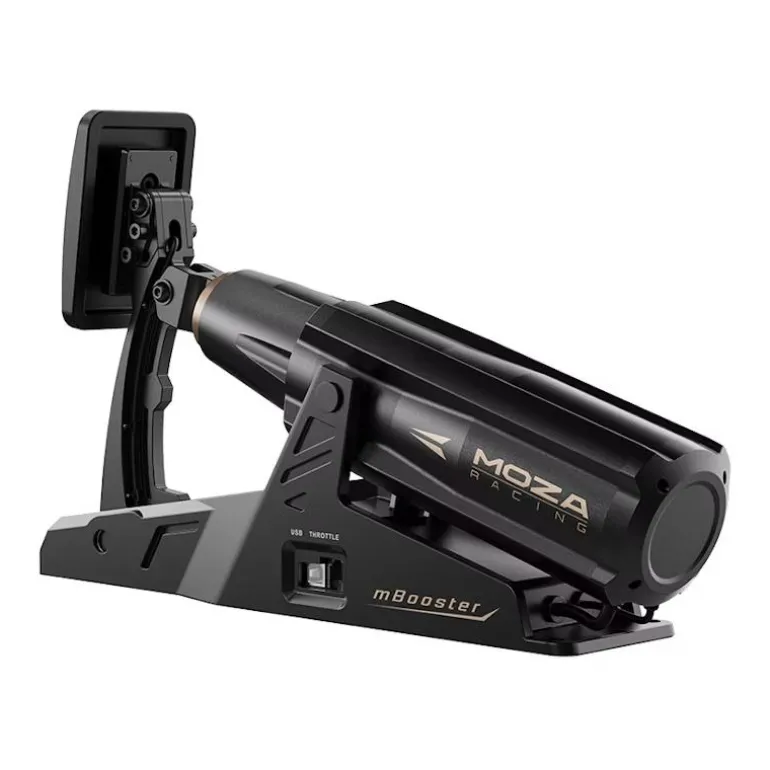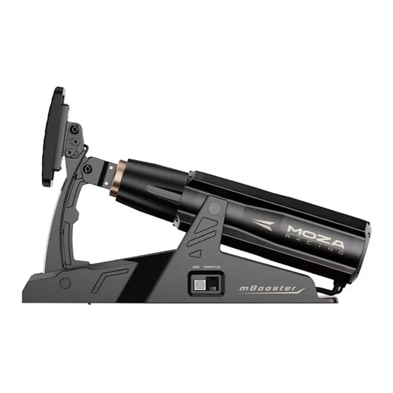 Los pedales MOZA mBooster se pueden conectar directamente a su PC, lo que los hace compatibles con cualquier configuración de carrera.