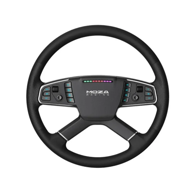 Descubre el MOZA TSW Truck Wheel, diseñado para una experiencia de simulación de camiones sin igual. Con su diseño clásico de cuatro radios y su diámetro estándar de 400 mm, esta rueda pone en tus manos la autenticidad del control de un camión. La llanta, envuelta en cuero de microfibra cosida a mano, ofrece una combinación de comodidad y agarre, mientras que el marco de aluminio de grado aeroespacial garantiza durabilidad a largo plazo. Equipado con botones RGB personalizables y luces LED, permite una amplia personalización. La compatibilidad con todas las bases MOZA, así como con sistemas de terceros a través de un adaptador universal, garantiza un ajuste perfecto en cualquier configuración. Mejorada por su construcción de acero de alta resistencia y opciones de ajuste versátiles, la rueda de camión MOZA TSW es la opción definitiva para los entusiastas de la simulación que buscan profundidad, funcionalidad y una experiencia de conducción inmersiva.