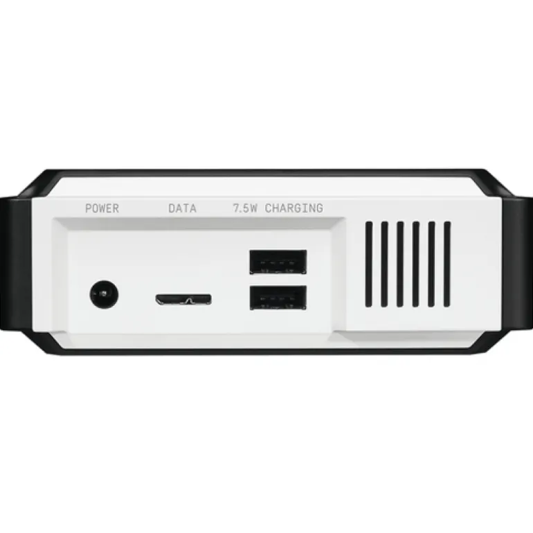 El disco WD_Black鈩 W para que cargar el equipo y los accesorios de videojuegos sea aún más sencillo. Se puede colocar tanto en vertical como en horizontal, lo que permite que el sistema de videojuegos mantenga los dispositivos cargados y listos para entrar en acción.
