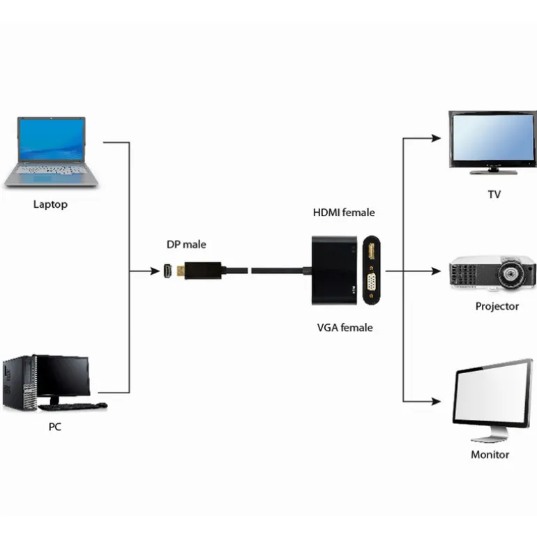 Cable adaptador DisplayPort a HDMI + VGA
