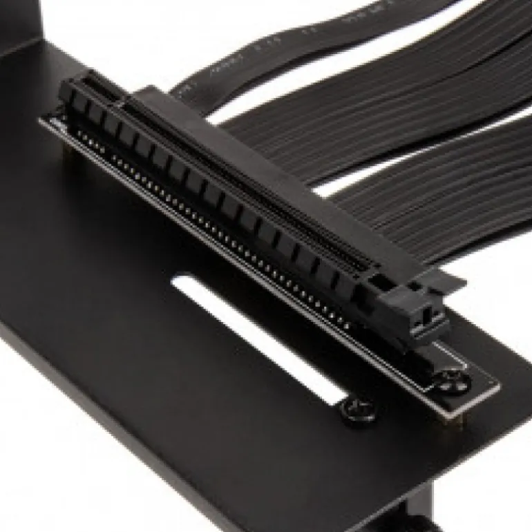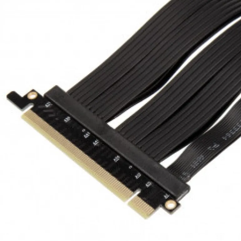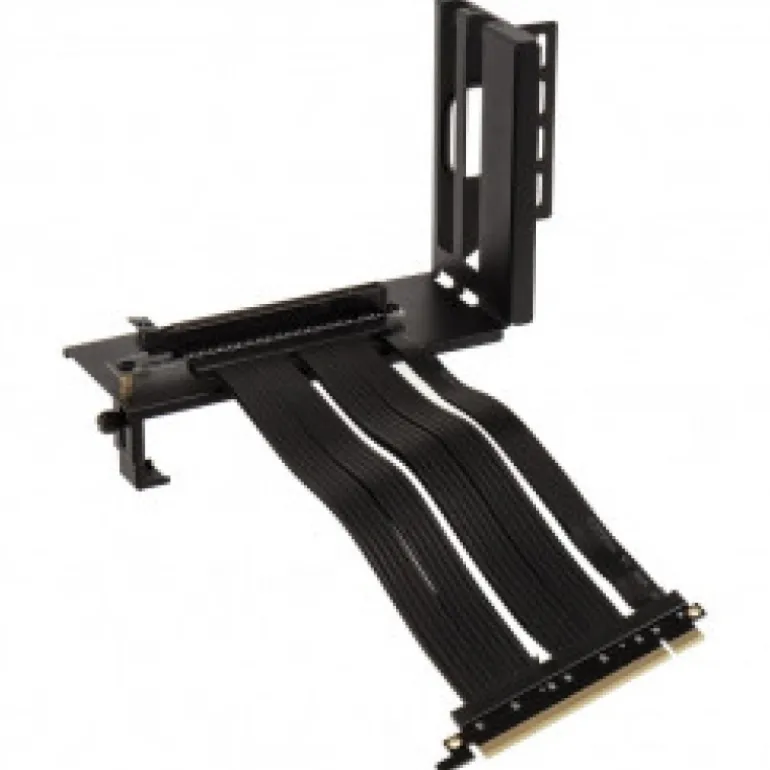 El cable vertical conecta la tarjeta gráfica a la ranura PCIe en la placa base. Su ranura x16 está conectada eléctricamente con 16 líneas de datos completas y, por lo tanto, proporciona el ancho de banda completo para tarjetas gráficas. Un cable flexible de cinta plana con una longitud de 200 milímetros se utiliza para la transmisión de datos. Nota: No es compatible con las cajas Mini-ITX.