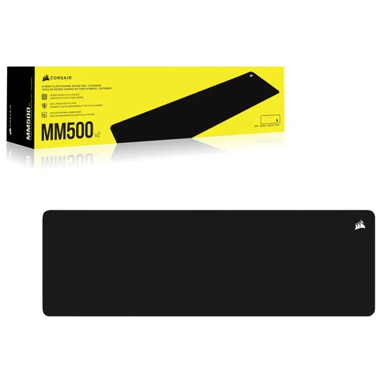 Con unas dimensiones generosas de 930 mm x 300 mm, la MM500 v2 ofrece un amplio espacio para movimientos amplios y precisos, ideal para juegos que requieren precisión milimétrica y reacciones rápidas. Su diseño en color negro, elegante y sobrio, complementa cualquier configuración de juego, añadiendo un toque de estilo a tu estación de batalla.