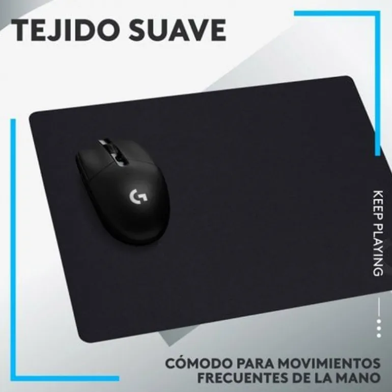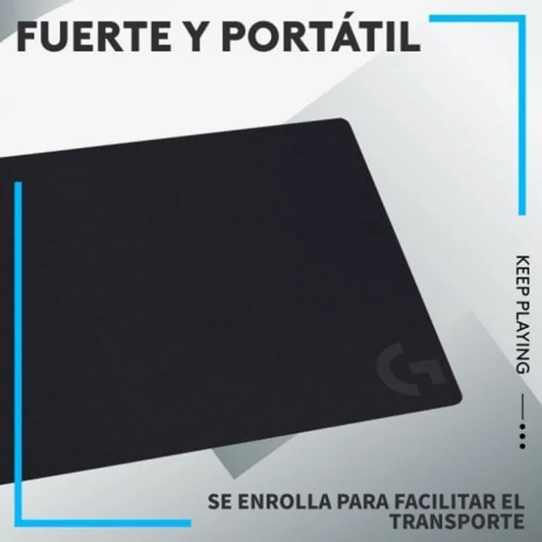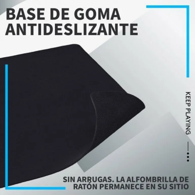 Alfombrilla de ratón para juegos de tela. Superficie de tela de alto rendimiento para un seguimiento preciso y consistente. La base de goma se mantiene en su lugar para un juego intenso. La textura de la superficie está optimizada para los ratones Logitech G y el máximo rendimiento de los juegos.