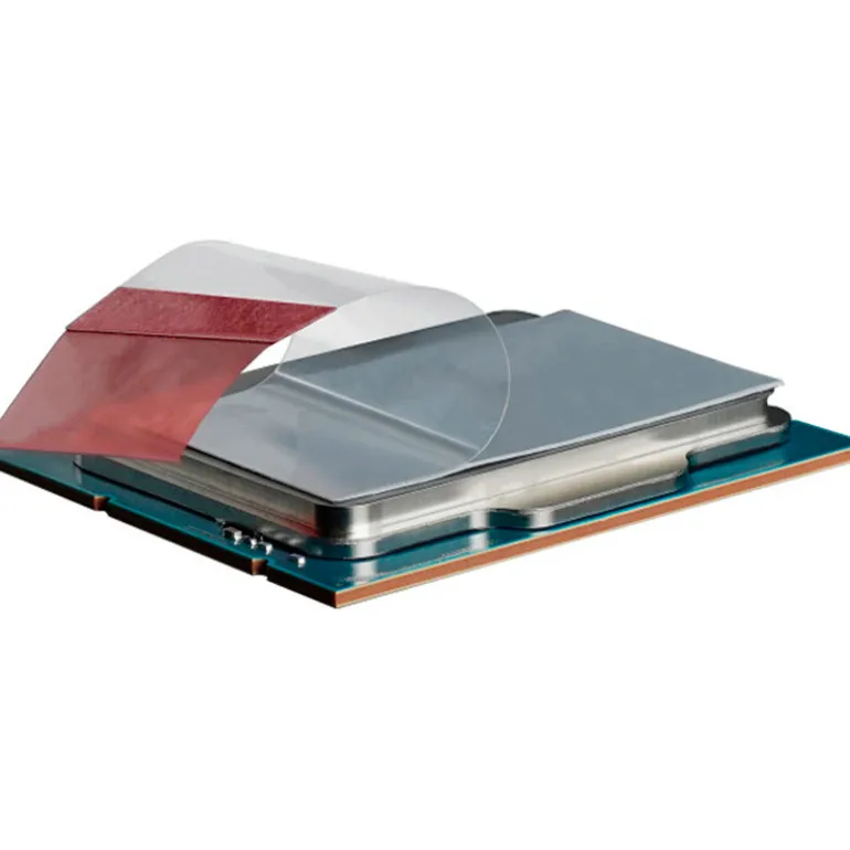 El PhaseSheet PTM está fabricado con un material de cambio de fase (PCM). A temperatura ambiente permanece en estado sólido, lo que facilita su aplicación. Una vez que el procesador o chip alcanza temperaturas de funcionamiento superiores a 45 °C, la almohadilla se licúa y actúa como una pasta térmica de alto rendimiento, optimizando la transferencia de calor.