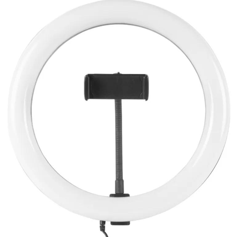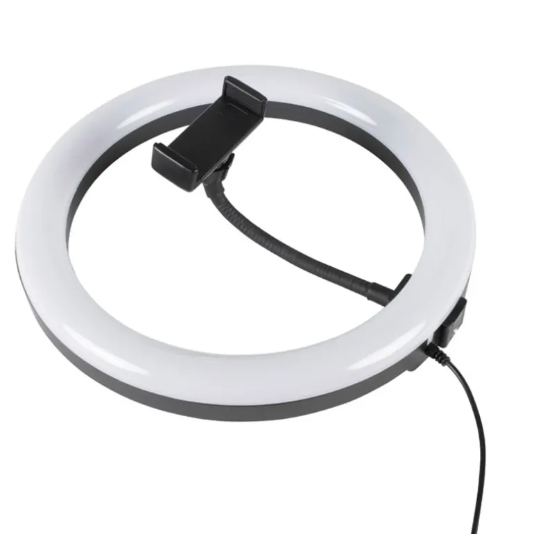 Este aro de luz LED de 10″ (25,6 cm de diámetro) está diseñado para mejorar la iluminación en directos, videollamadas, fotos de producto, maquillaje o creación de contenido en redes sociales. Sus 120 LED ofrecen una luz homogénea y suave, reduciendo sombras duras y mejorando el aspecto general en cámara.