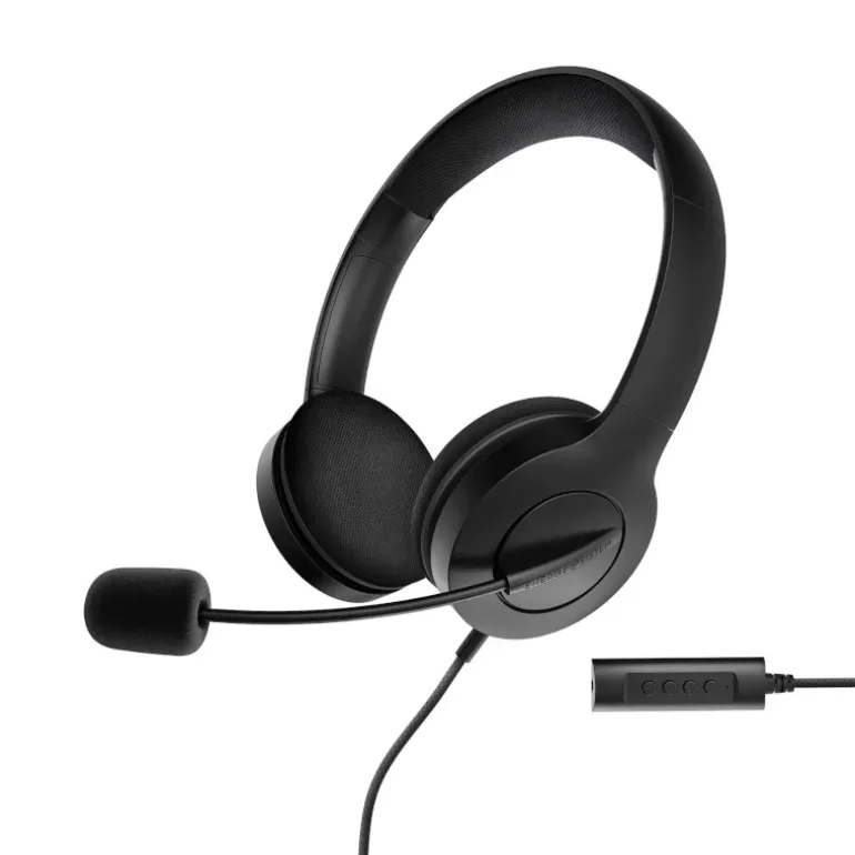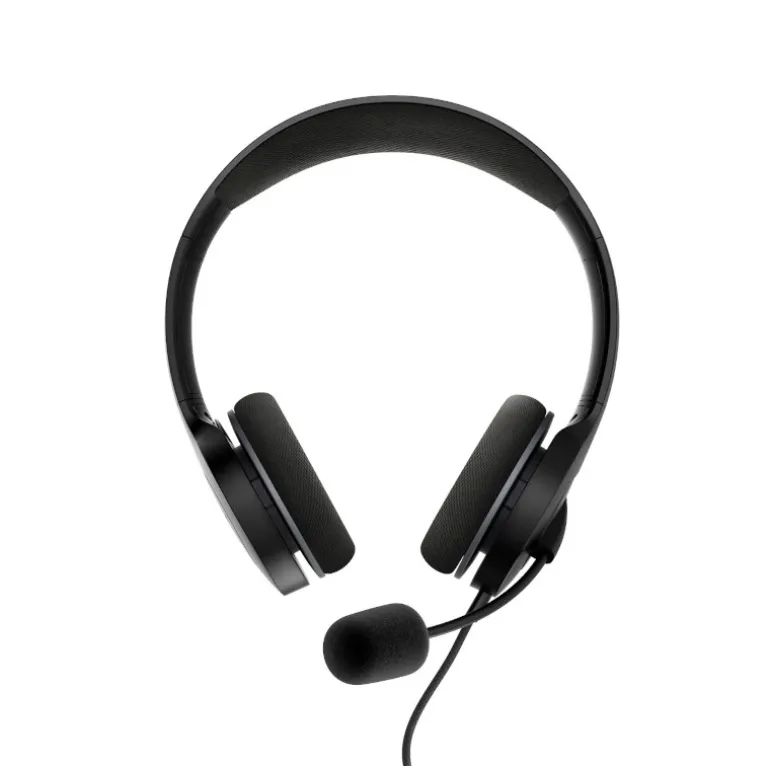 Auriculares para oficina con un diseño on-ear ligero, diadema extensible y almohadillas de espuma acolchadas que proporcionan horas de comodidad absoluta. Su cable trenzado evita que sufras incómodos enredos mientras hablas y mejora la calidad en tus llamadas