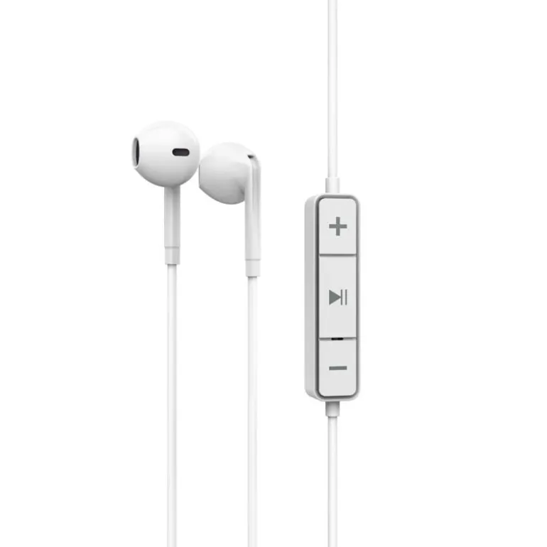 Auriculares in-ear con botones multifunción integrados que te permiten controlar la lista de reproducción, y subir o bajar el volumen. Con conector tipo C para cargar la batería cómodamente.