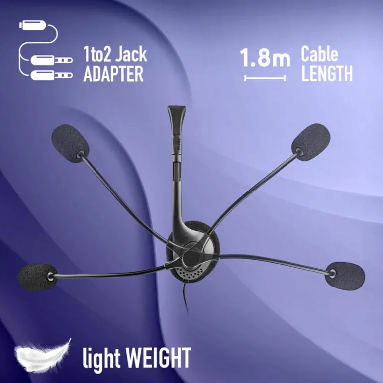 Estos auriculares con cable están diseñados para ofrecer comodidad y calidad de sonido durante las llamadas y el uso multimedia en tu portátil. Son ligeros y cuentan con una diadema ajustable para un ajuste personalizado. El micrófono ajustable y sensible garantiza una transmisión de voz nítida, mientras que el control de volumen te permite ajustar el nivel de audio a tu gusto.