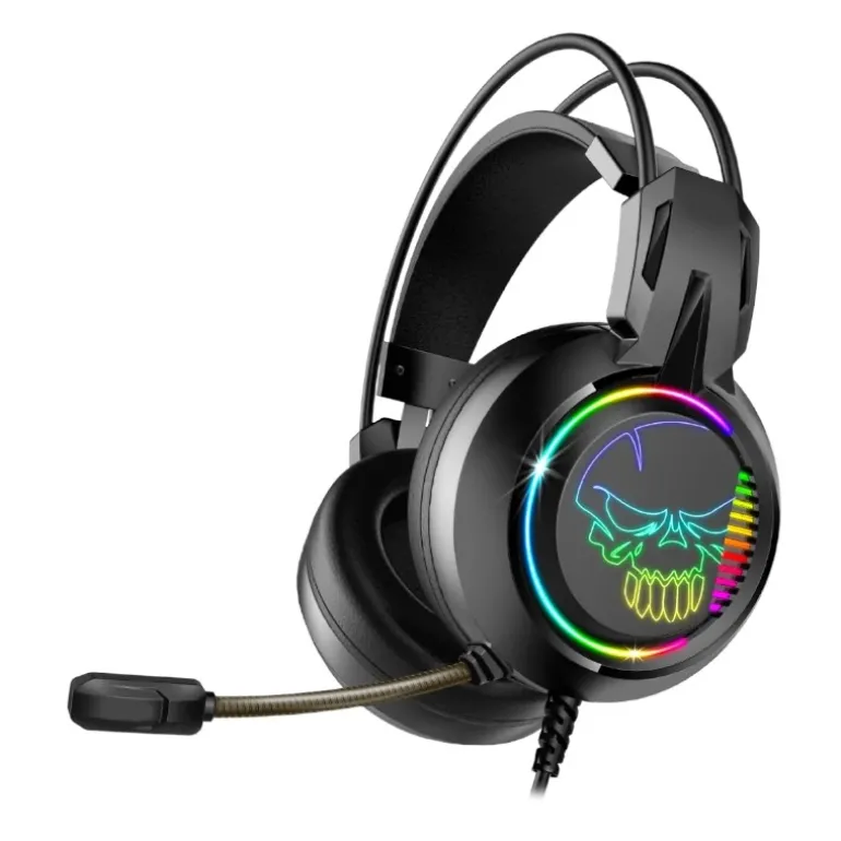 Los auriculares ofrecen un sonido envolvente virtual 7.1 que crea una experiencia inmersiva de 360 grados con bajos potentes y claridad sorprendente gracias a los altavoces de 40 mm. Son compatibles con PC a través de un cable USB de 2 metros con instalación automática y ajustes 7.1 virtual surround mediante software descargable. El micrófono omnidireccional con reducción de ruido garantiza comunicaciones claras y ajuste flexible. La retroiluminación RGB rainbow ilumina el diseño ultra de los auriculares y skull spirit. Su diseño circumaural y comodidad duradera lo hacen ideal para sesiones de juego prolongadas.