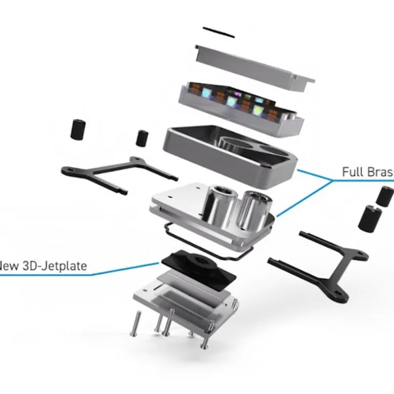 El cuerpo del bloque está fabricado a partir de un bloque sólido de latón de alta calidad, con conectores niquelados que proporcionan durabilidad y un acabado premium. La base de cobre niquelado ha sido ampliada para garantizar una cobertura total de CPUs de gran tamaño, lo que lo hace ideal para los procesadores más potentes del mercado actual.
