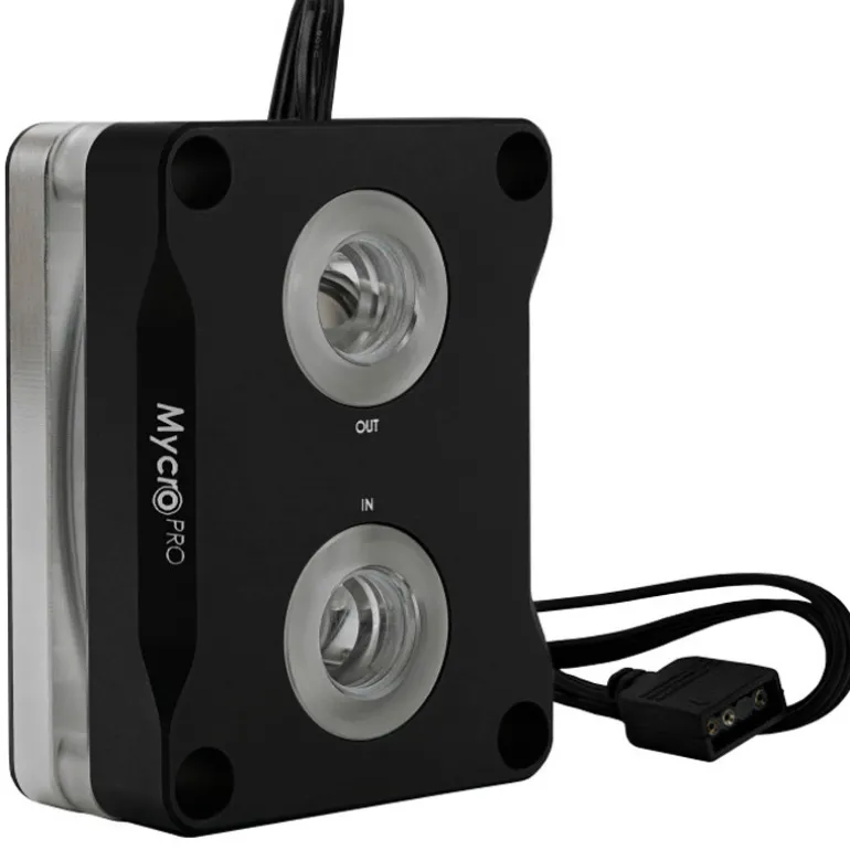 El AMD Mycro Direct-Die Pro RGB V1 es un enfriador de agua optimizado para la plataforma AMD AM5, que cuenta con una placa base de cobre niquelado e iluminación RGB. En comparación con la versión estándar, la versión Pro ofrece una estructura híbrida de microaletas y una resistencia al flujo reducida. El enfriador de matriz directa se coloca directamente sobre el silicio de la CPU AMD desconectada. Una lista actualizada de todos los procesadores compatibles verificados está disponible en línea.