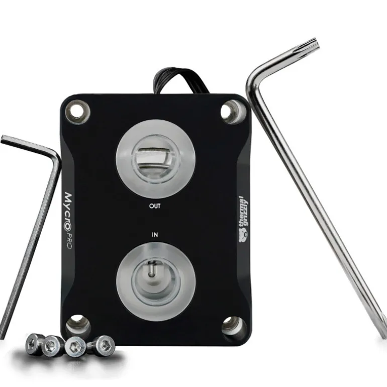 La versión Pro incorpora una estructura híbrida de microaletas de dos tamaños junto con una placa de chorro, lo que mejora la transferencia térmica y reduce la resistencia al flujo en comparación con la versión estándar. Esto garantiza un rendimiento superior en refrigeración líquida de alto nivel.
