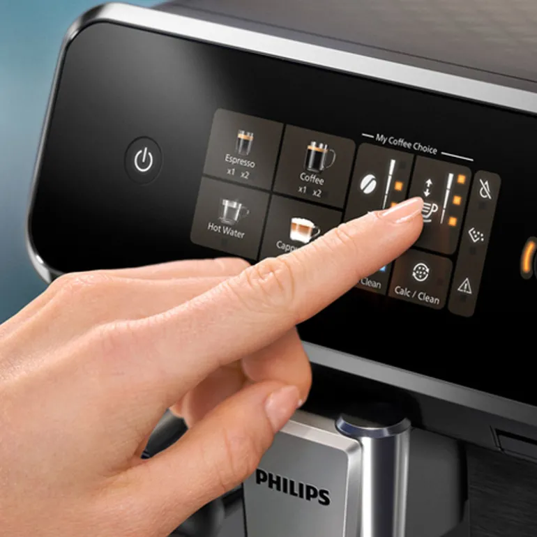 Panel táctil fácil de manejar, con iconos claros y accesibles incluso para quienes no tienen experiencia con cafeteras automáticas.