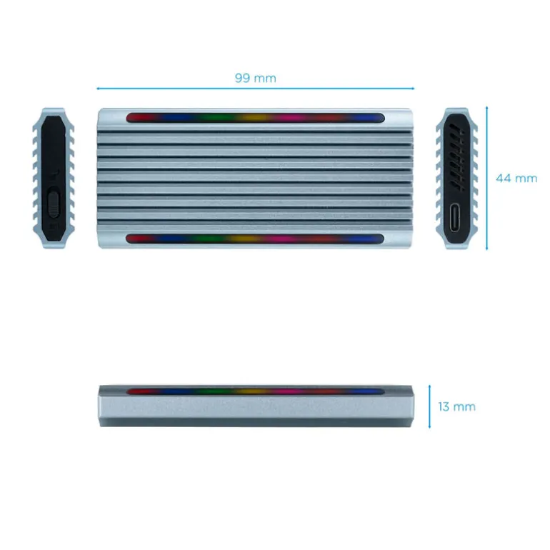 Caja Externa TooQ Shinobi RGB Para SSD M.2 Gris