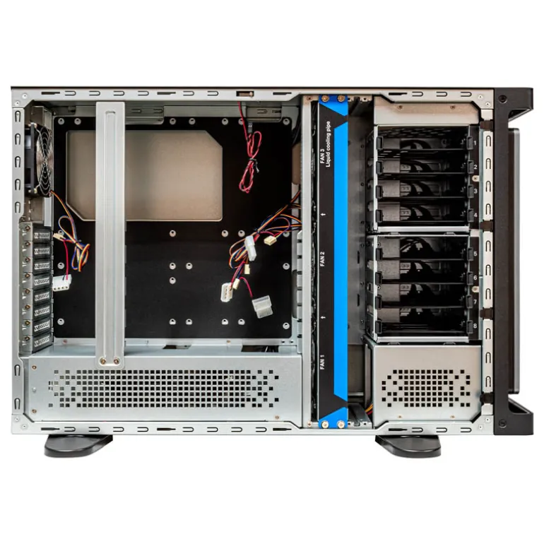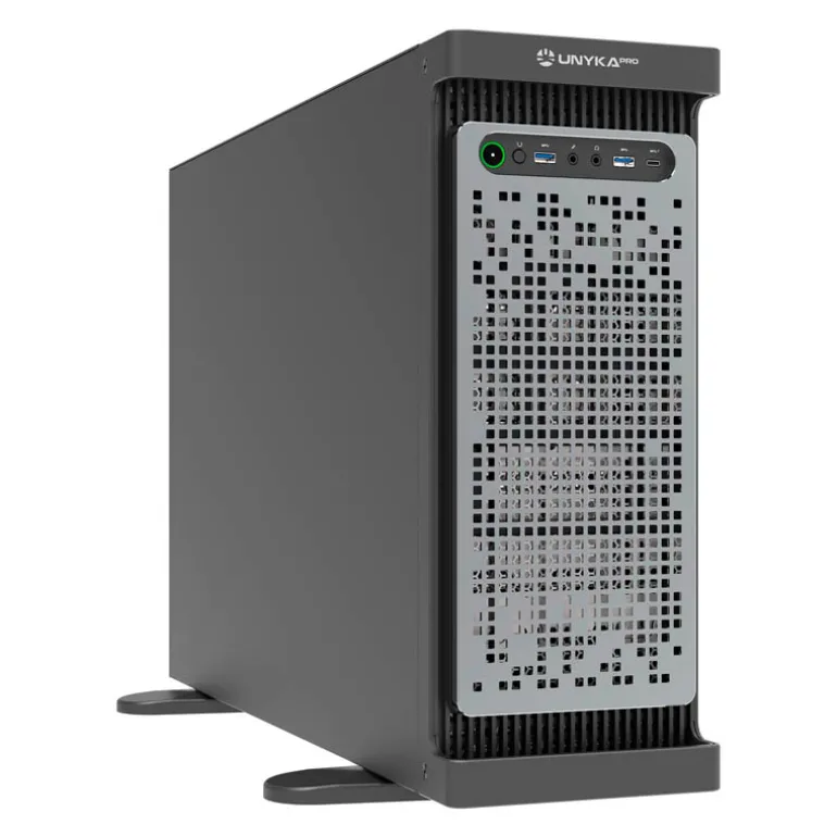 Equipado con 8 bahías internas de 3.5″ y dos de 2.5″, junto con 8 ranuras estándar de expansión PCIe, la estación de trabajo puede albergar hasta 4 GPUs, satisfaciendo así las necesidades más exigentes del sector en términos de capacidad de procesamiento gráfico y computacional.