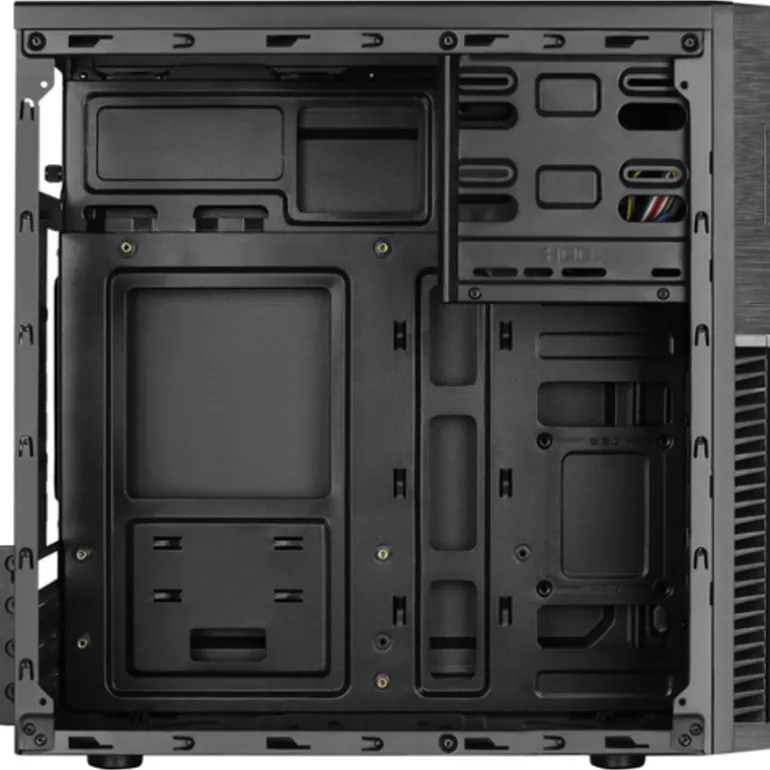 Mini-torre de alto rendimiento con soporte para placas base Micro-ATX y Mini-ITX. Panel frontal acabado tipo aluminio pulido, con ventana acrílica transparente que permite una total visualización de su ventilador de 12cm. Soporta 1 lector de discos ópticos, 2 discos HDDs de 3.5鈥