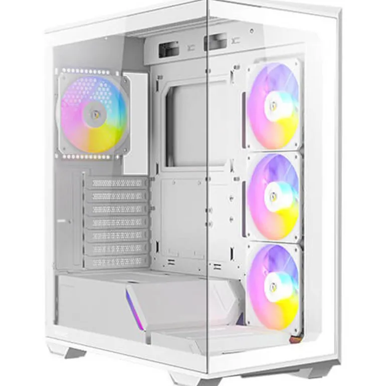 - Ventiladores incluidos: 3 ventiladores inversos PWM ARGB de 120 mm en el lado derecho + 1 ventilador PWM ARGB de 120 mm en la parte trasera