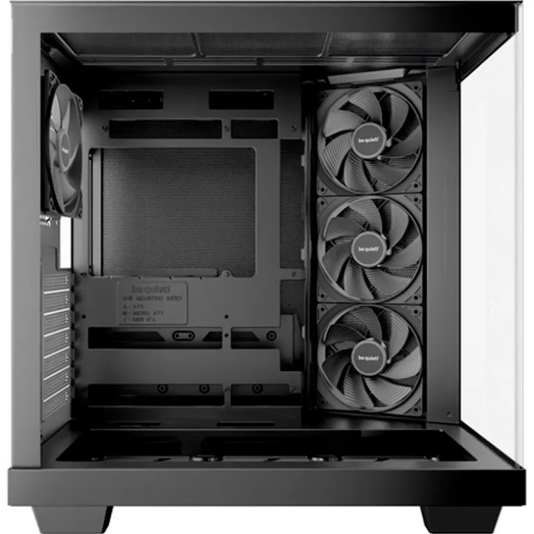 Light Base 500 cuenta con 4 ventiladores Pure Wings 3 preinstalados. El ventilador de escape trasero es un Pure Wings 3 de 120 mm PWM, los ventiladores de entrada laterales son Pure Wings 3 de 120 mm PWM con aspas invertidas. Todos los ventiladores están optimizados para proporcionar el máximo flujo de aire y reducir el ruido, al tiempo que generan turbulencias es gracias a las aspas de su diseño especial. Las aspas invertidas garantizan que su lado más bonito sea visible en todo momento.