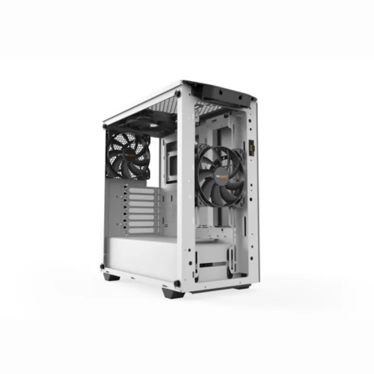 Tres ventiladores Pure Wings 2 preinstalados con flujo de aire optimizado garantizan una refrigeración y un flujo de aire perfectos. A pesar del diseño compacto de la caja, los ventiladores de la parte delantera, superior y trasera son modelos de 140 mm, lo que resulta en un funcionamiento muy silencioso. Se pueden instalar adicionalmente hasta dos ventiladores de 140 mm.