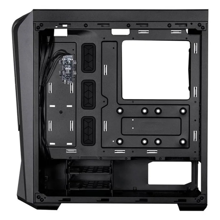 El panel lateral de vidrio templado se asegura sin tornillos, permitiendo un acceso rápido a los componentes internos. Con amplio espacio para actualizaciones, el MasterBox 500 te mantendrá a la vanguardia del juego, con soporte para tarjetas gráficas de hasta 410 mm, disipadores de CPU de hasta 165 mm y fuentes de alimentación de hasta 180 mm de longitud.