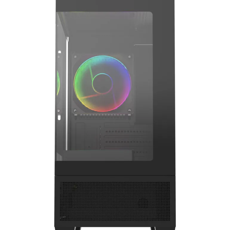 La caja viene con tres ventiladores ARGB, con dos ventiladores de entrada inversa de 120 mm preinstalados en la parte inferior y un ventilador de 120 mm en el escape trasero, lo que proporciona un excelente flujo de aire y sorprendentes imágenes ARGB a través de la placa base o el botón de control LED.