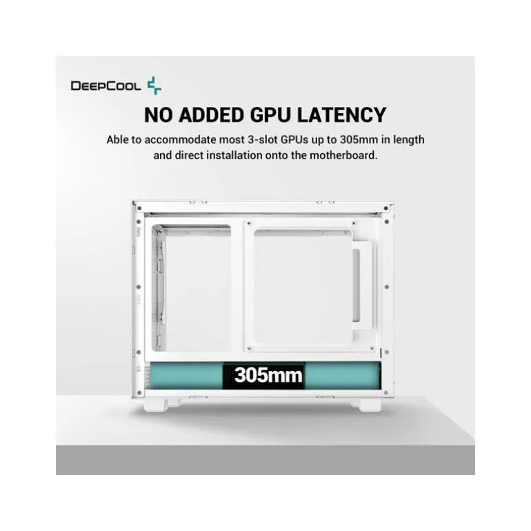 Diseñada para acomodar la mayoría de las GPU de 3 huecos y ventiladores duales que tengan 305 mm de longitud o menos, y que se puedan insertar en la placa base sin asistencia de un cable elevador. ¡Se acabaron las preocupaciones por la latencia de la GPU!