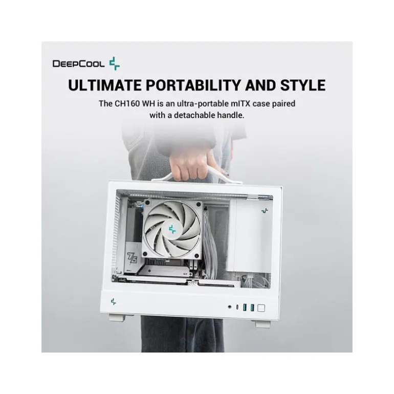 La CH160 es una caja ultraportable de formato mini-ITX que tiene todas las características de una caja DeepCool, pero un tamaño menor. El diseño interno proporciona una gran flexibilidad para las diferentes opciones de PSU y discos.