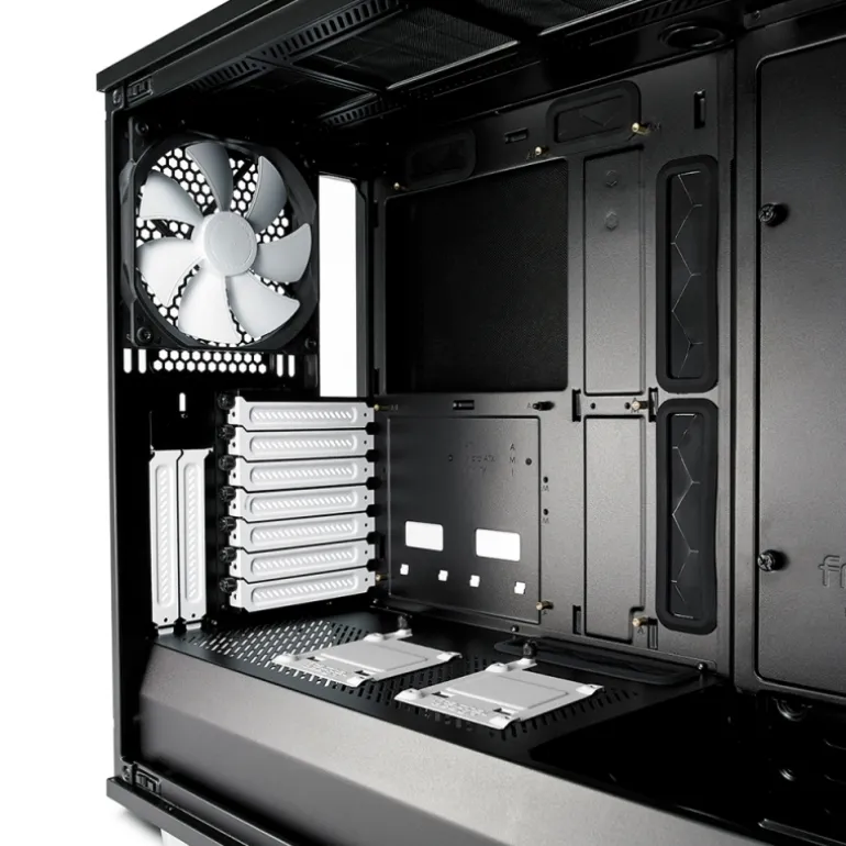 El vidrio templado transparente y los paneles de acero con amortiguación acústica con un elegante mecanismo de enclavamiento de empujar para cerrar encierran un interior completamente rediseñado con soporte de componentes y flexibilidad de almacenamiento sin precedentes. Se pueden instalar seis unidades de 3.5 «/ 2.5» y dos unidades de 2.5 «con colocación de precisión en innumerables configuraciones en toda la carcasa.