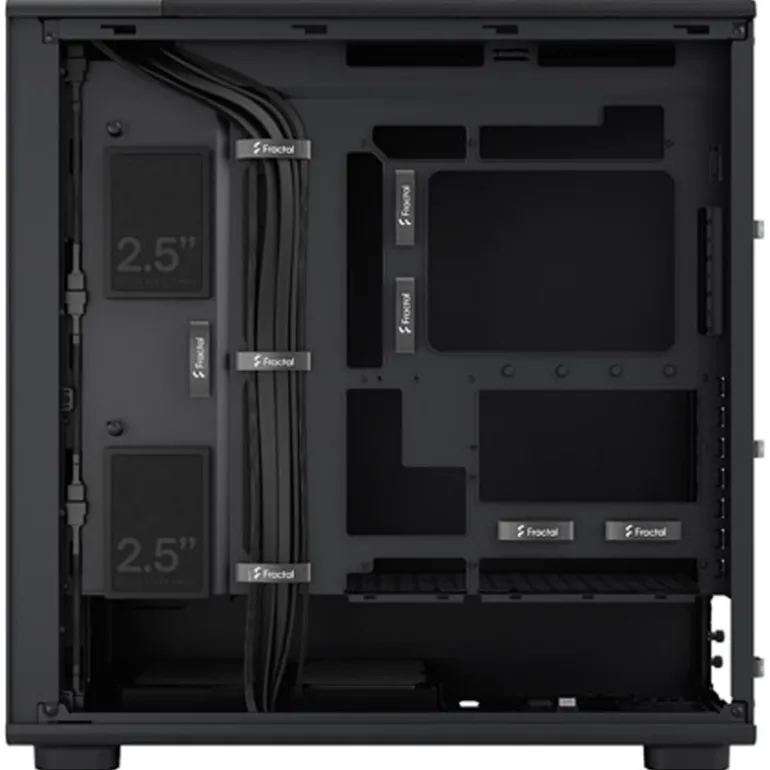 Interior pensado para un acabado limpio con pasacables con ojales de goma, bridas autoadherentes deslizantes y amplio espacio tras la placa, facilitando un montaje ordenado y mejorando también el flujo de aire.
