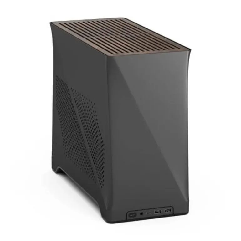 Cuenta con un botón de encendido iluminado y dos puertos USB para conectar dispositivos, incluido un USB tipo C de 20 Gbps.