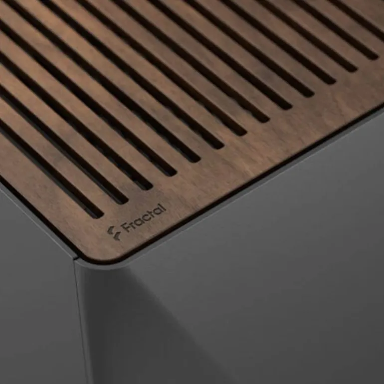 Disfrute de una estética elegante y esculpida con un exterior de aluminio anodizado y un panel superior de nogal con certificación FSC.