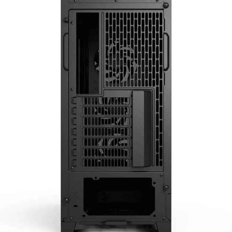 Diseño centrado en refrigeración con paneles frontal y superior en malla y un canal de aire integrado que dirige el flujo directamente a la tarjeta gráfica para mejorar temperaturas bajo carga.