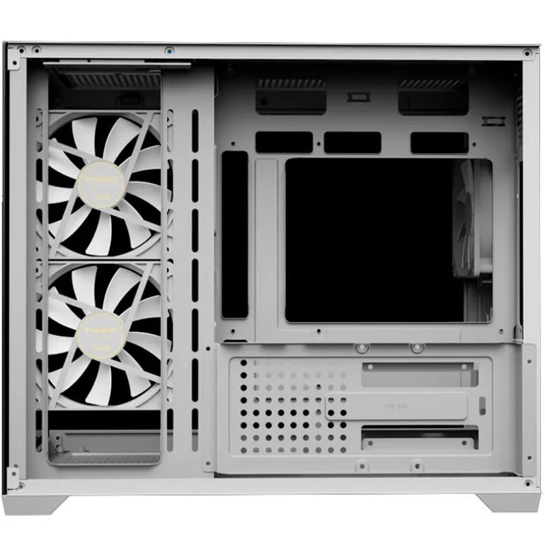 La caja viene con tres ventiladores ARGB, con dos ventiladores de admisión inversa de 120 mm preinstalados en el lateral y un ventilador de 120 mm en el escape trasero, lo que proporciona un excelente flujo de aire y una impresionante imagen ARGB a través de la placa base o el botón de control LED.