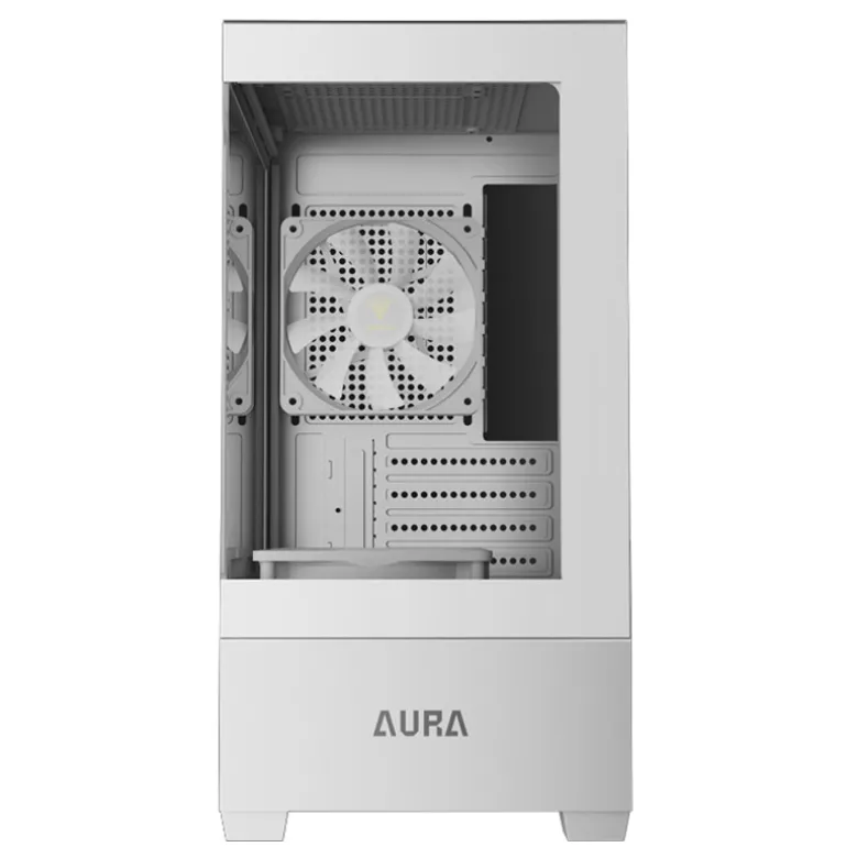 La serie AURA GC9M ARGB, disponible en blanco y negro, ofrece un diseño panorámico compacto con tres ventiladores ARGB integrados, compatibilidad mejorada y paneles frontales y laterales de cristal templado para realzar la estética de su equipo.