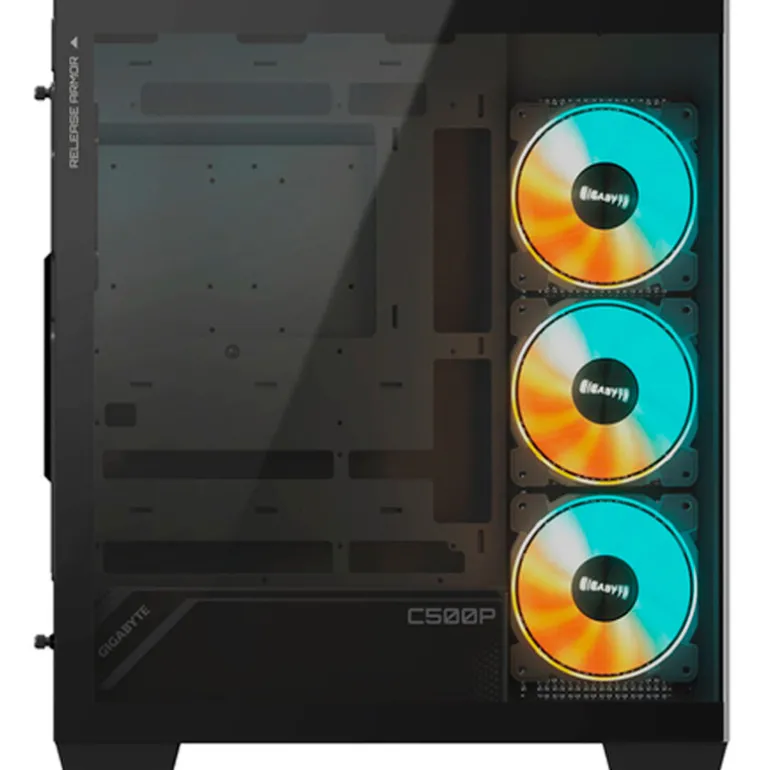 La Gigabyte C500 Panoramic Stealth RGB es una torre con panel frontal y laterales de vidrio templado panorámico, diseñada con flujo de aire optimizado y soporte para diseño de placa base con conexión trasera, totalmente compatible con la serie Stealth de GIGABYTE.