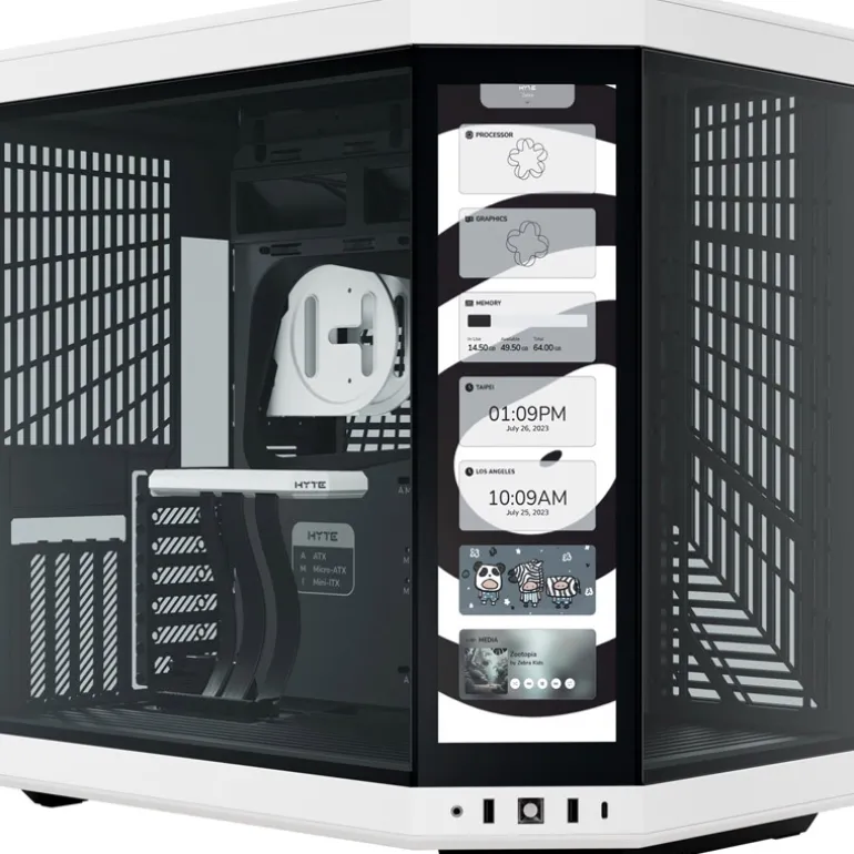 Con una resolución de 682 x 2560 (2.5K) y una frecuencia de actualización de 60Hz, esta pantalla táctil IPS capacitiva ofrece una experiencia visual increíblemente nítida y suave como la mantequilla con capacidad multitáctil de 10 puntos, desbloqueando una gran cantidad de posibilidades y una amplia personalización de pantalla impulsada por el software HYTE Nexus. Nuestro panel de 3.ª generación, más grande y brillante, cuenta con una pantalla más grande de 14,9″ con un 43% más de brillo para una experiencia de usuario más inmersiva. Todo en un solo paquete integrado en la estructura del chasis de la caja, pionero en la interacción digital significativa con la mejor pantalla jamás vista en una caja.