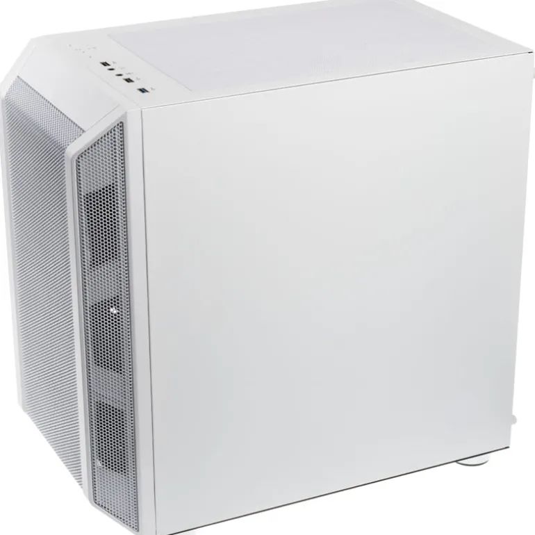 Además de los ventiladores preinstalados, los usuarios también pueden instalar dos ventiladores más de 120 mm en el panel superior, donde es posible encontrar un filtro de polvo magnético instalado con una malla estilo panal. Un panel lateral con bisagras de vidrio templado completo muestra la construcción de su sistema y se abre y cierra fácilmente con la pestaña de extracción. Los imanes se utilizan para mantener el panel lateral en su lugar cuando está cerrado.