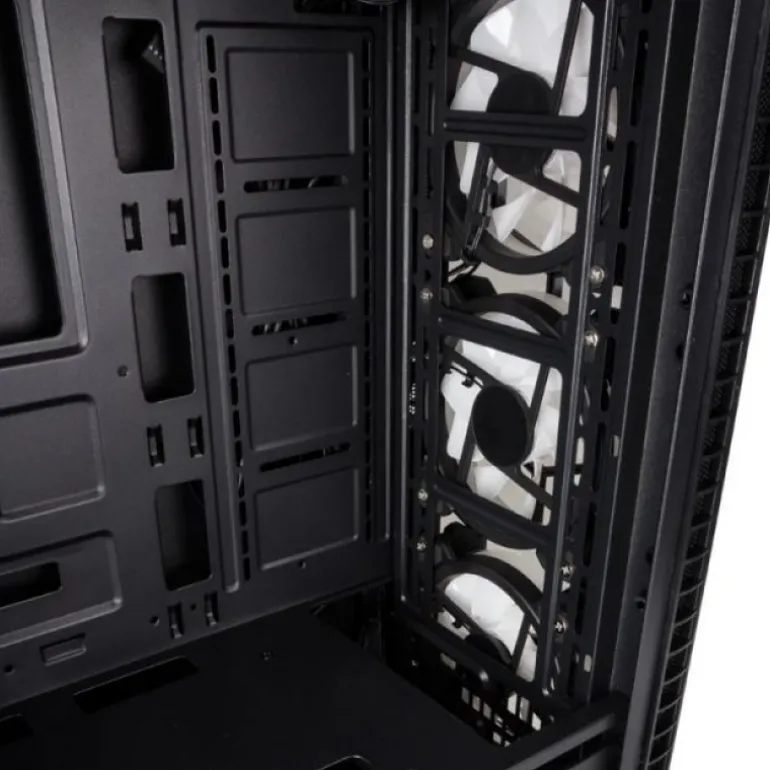 La bandeja de la placa base y la cubierta de la fuente de alimentación ofrecen numerosas aberturas para cables. Se puede instalar un radiador de 240 mm en la parte frontal y superior del gabinete del Observatorio. Las salidas de aire de la carcasa vienen equipadas con filtros de polvo fino que se encuentran en la parte superior e inferior de la carcasa. Estos se pueden quitar sin la necesidad de herramientas e incluso se pueden completar con un diseño de nido de abeja inteligente.
