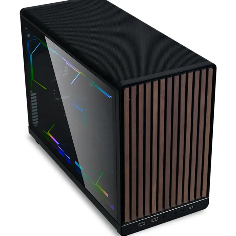 El panel frontal del A3-mATX Wood Edition está hecho de un sofisticado adorno negro, lo que hace que sea un equilibrio perfecto entre estilo y funcionalidad.