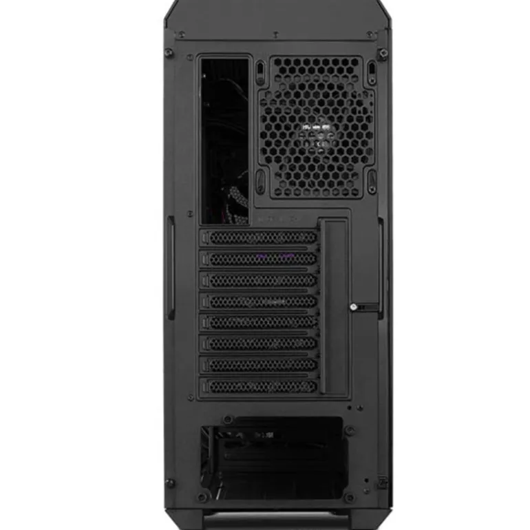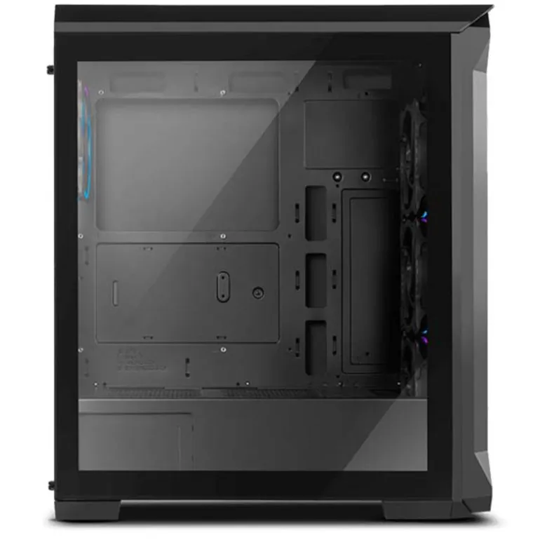 Una robusta torre con un original y rompedor diseño que permite crear espectaculares efectos de color gracias a sus cuatro ventiladores ARGB de 120 mm que incluye y que podrás contemplar en todo momento gracias a su panel lateral de cristal templado.