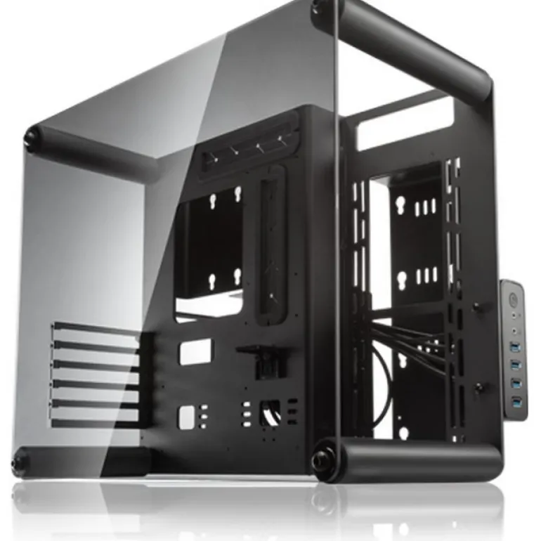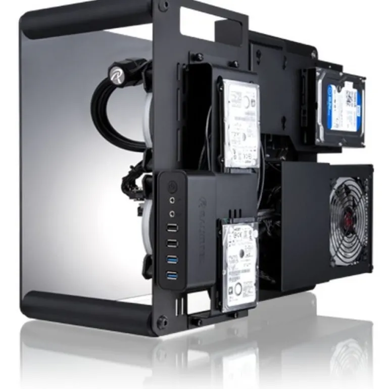PAEAN M, arte de diseño en su mejor momento por RAIJINTEK – un chasis Micro ATX de marco abierto, la estructura principal incluye placa intermedia, hecha de aluminio de 3,0 mm con chorro de arena negro, cilindro de aluminio 4pcs con tubo de goma y vidrio templado de 4,0 mm en la parte delantera.