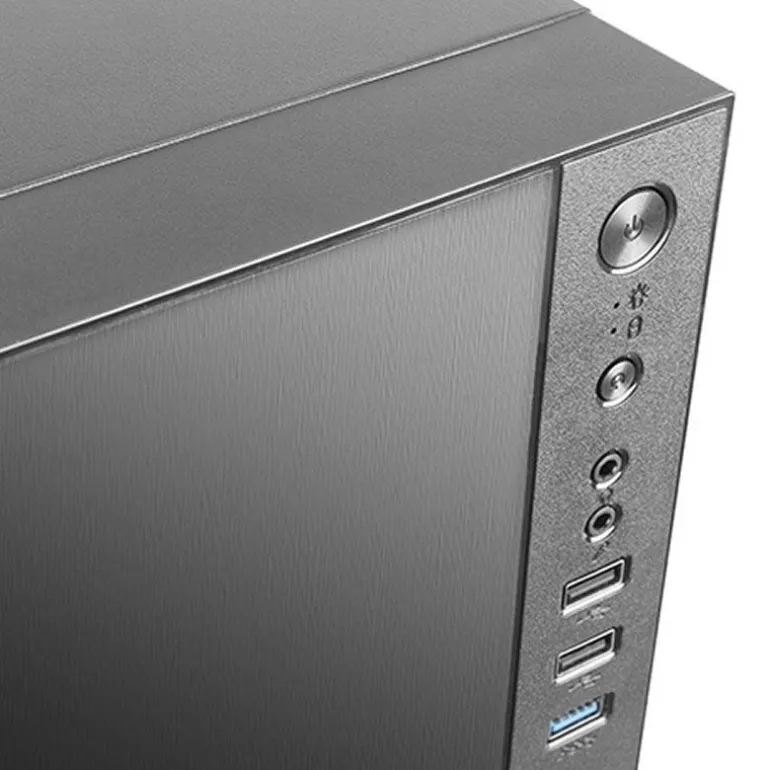 Caja de ordenador Premium Micro-ATX / Mini-ITX de alto rendimiento y tamaño extendido diseñada para ofrecer una estética minimalista y elegante, con una gran funcionalidad y una refrigeración sobresaliente. Cuenta con un frontal con un elegante tratamiento tipo aluminio pulido y un acabado negro profesional que encaja perfectamente en contextos tanto domésticos como de oficina.
