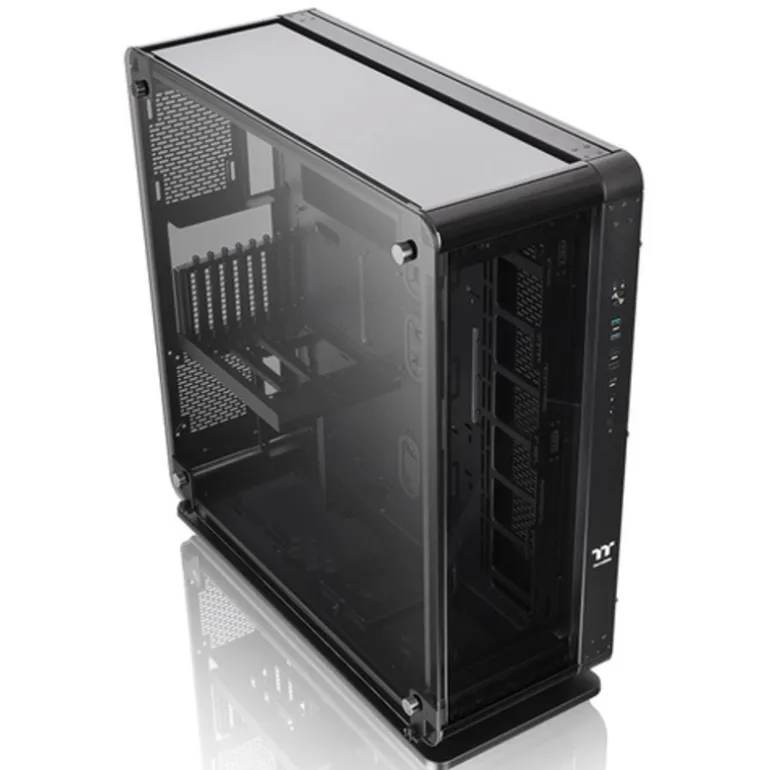 El Core P8 TG es un chasis de torre completa E-ATX transformable que se puede utilizar como una caja de estilo cerrado o abierto con la certificación Tt LCS. Todo combinado en uno, el chasis de torre completa de vidrio templado Core P8 se puede transformar entre las dos formas sin esfuerzo y es el miembro más nuevo de la icónica serie Core de marco abierto de Thermaltake. El Core P8 TG presenta un diseño completamente modular, ranuras PCI-E rotativas, soporte para ventiladores de 120 mm o 140 mm y filtros extraíbles, una expansión notable para componentes de PC de alta gama. El Pacific Core P5 DP-D5 Plus Distro-Plate con combinación de bomba también se puede instalar con este estuche, lo que le brinda muchas opciones para mostrar su enfriamiento líquido. El Core P8 TG es ideal para usuarios que buscan una carcasa de PC única.